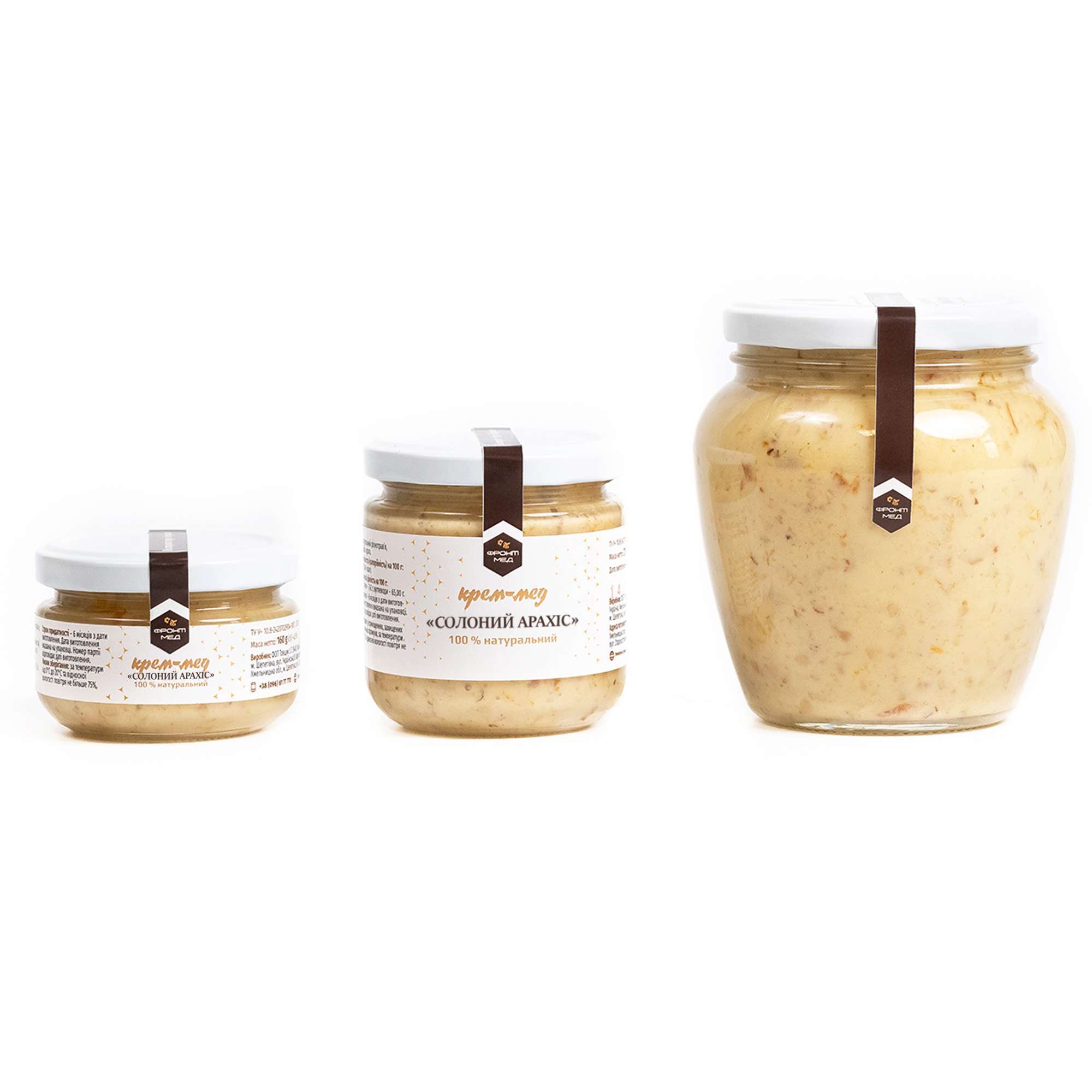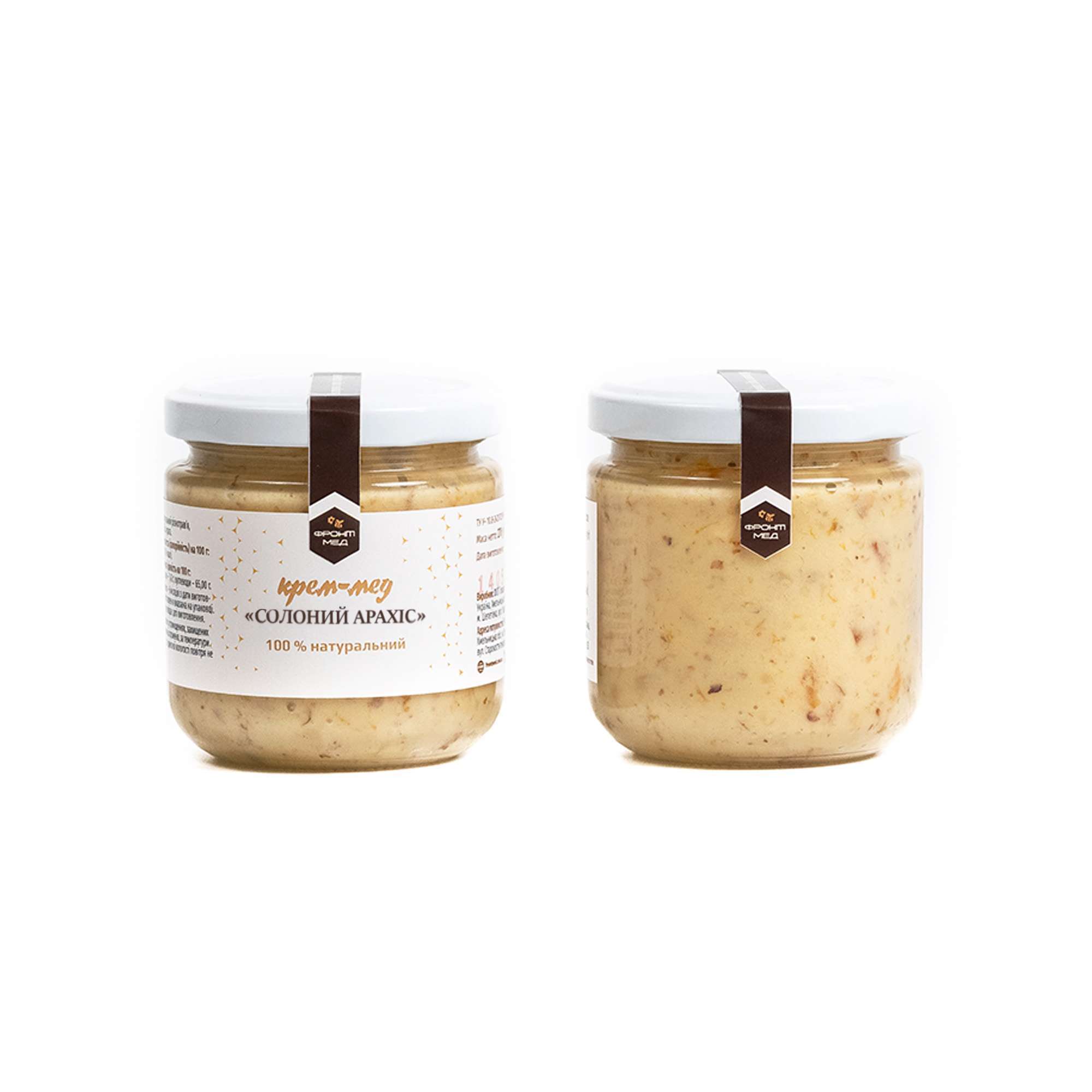 Солоний арахіс та солодкий мед – смак контрастів. Десерт “Солоний арахіс” підійде для любителів яскравих поєднань у їжі. Солоне вдало відтіняє солодке і навпаки. Такий десерт стане гарним подарунком для тата, чоловіка чи брата і є менш калорійним замінником арахісової пасти. У процесі виготовлення збереглись усі корисні властивості. Десерт не містить консервантів та цукру.