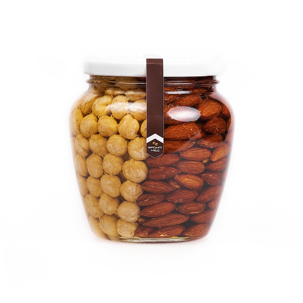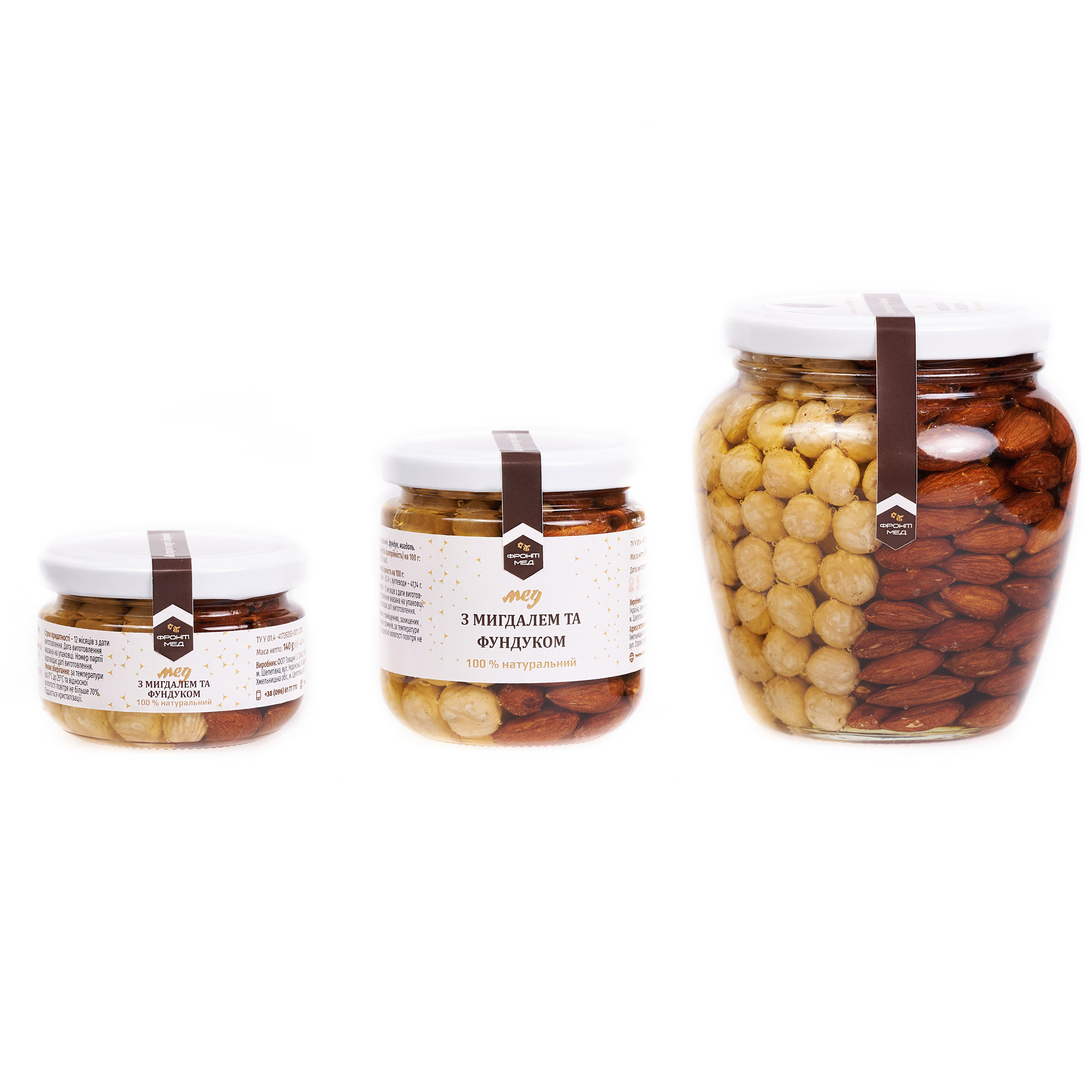 Як обрати фаворит серед горішків? Купити мед з фундуком та мигдалем і визначити, який горіх ваш улюблений! Темні горішки – хрумкий мигдаль, світлі – відбірний фундук. Кілька ложок десерту з медом акації і заряд енергії на день гарантовано!