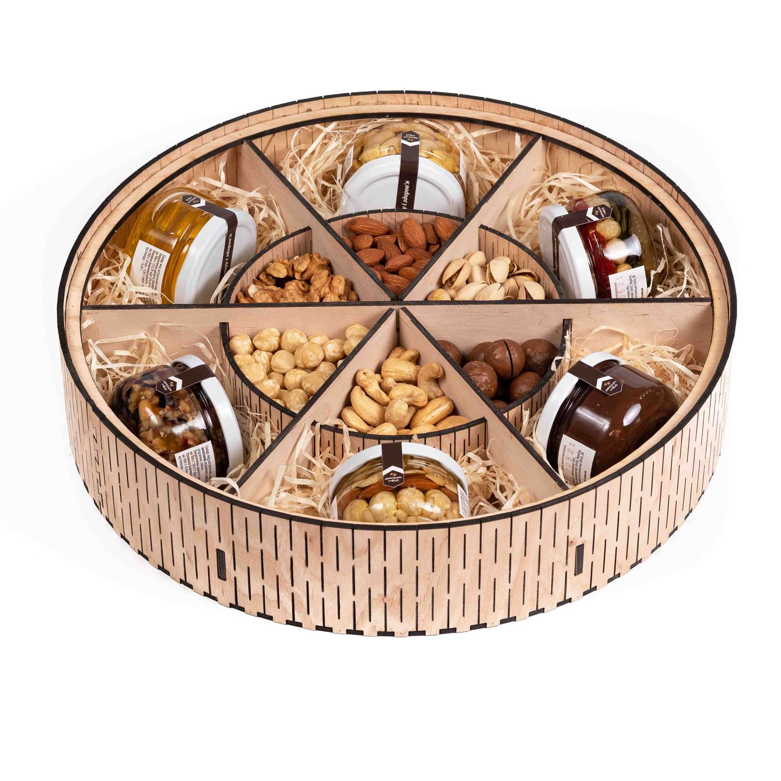 “Елітна колекція” – це концентрація шести корисних десертів та горішків в одній вишуканій коробці. Цей подарунок – чудовий спосіб побажати солодкого життя керівнику, партнеру, колезі чи особливій людині.