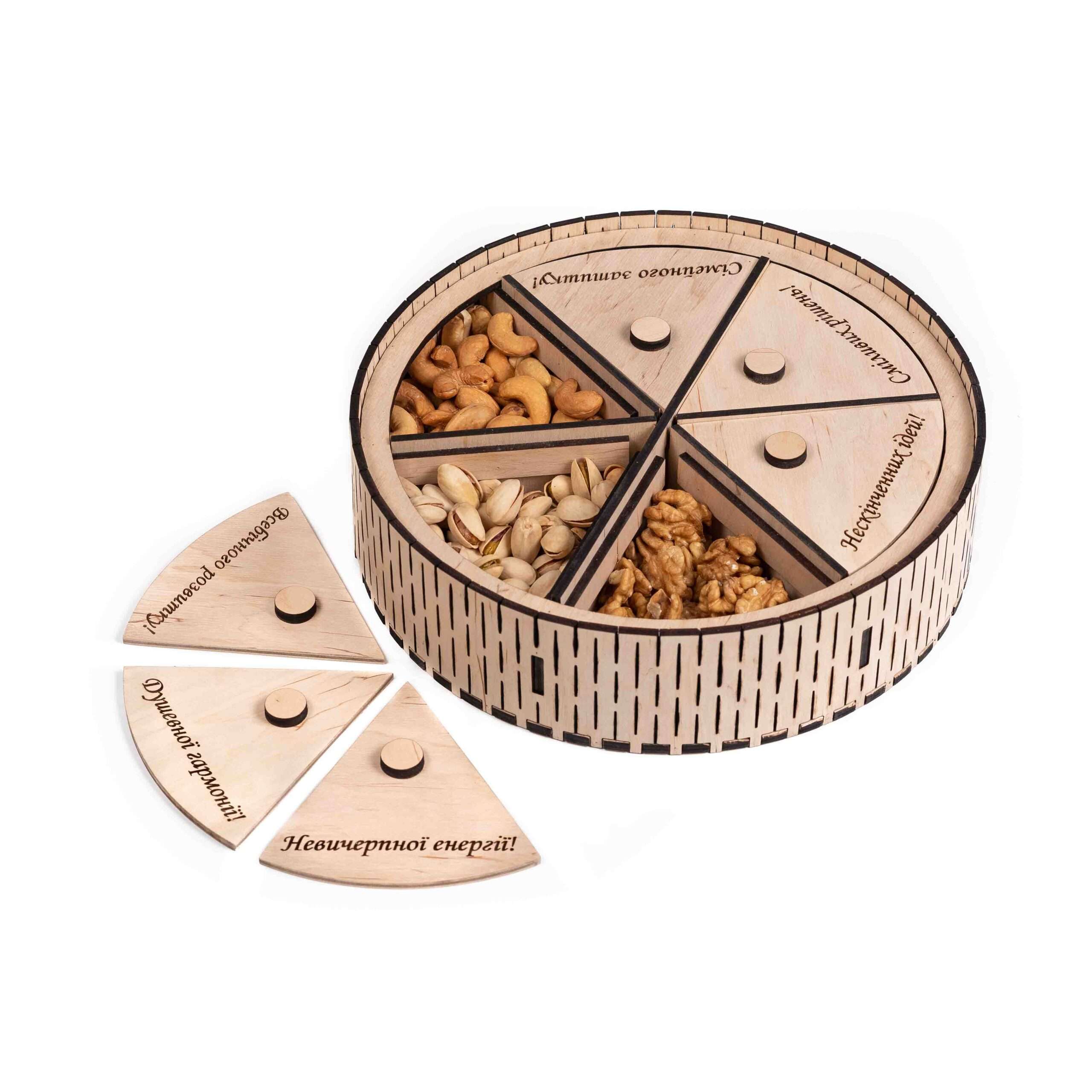 Дерев’яна коробка (діаметр – 25 см, висота – 7 см) з окремими віконцями